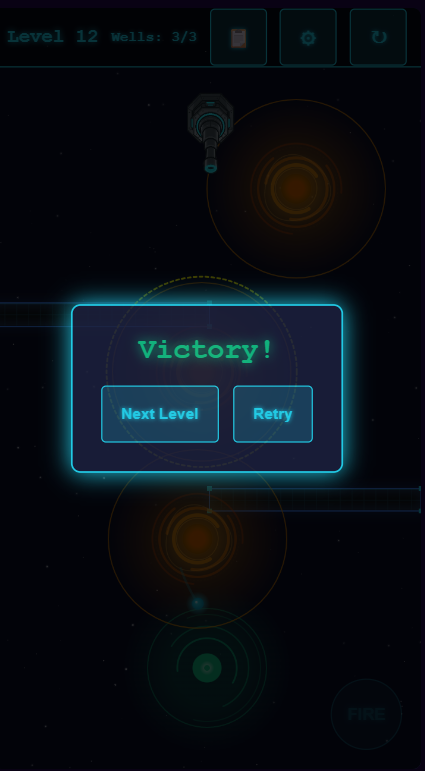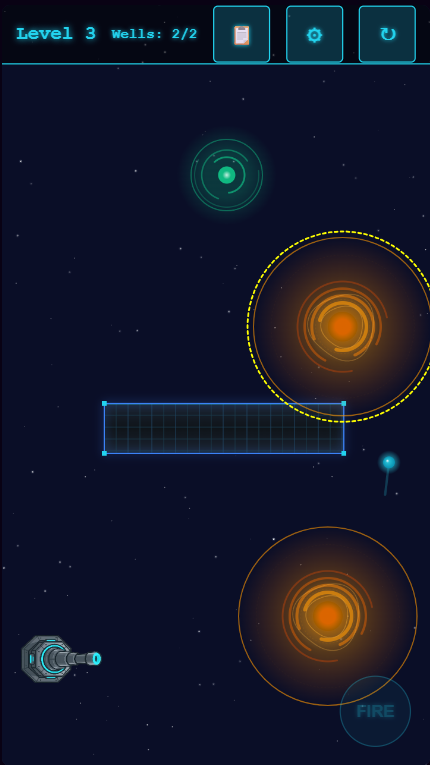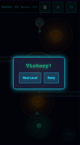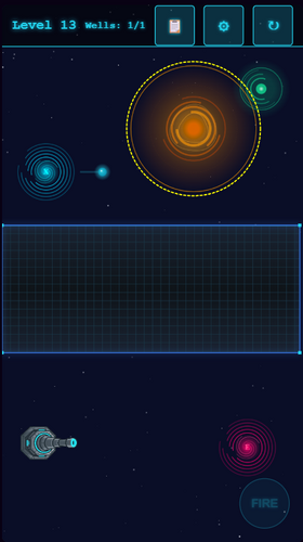 Strategically place gravity wells to guide an un-aimable cannonball through obstacles towards a target. Master the physics to achieve victory.